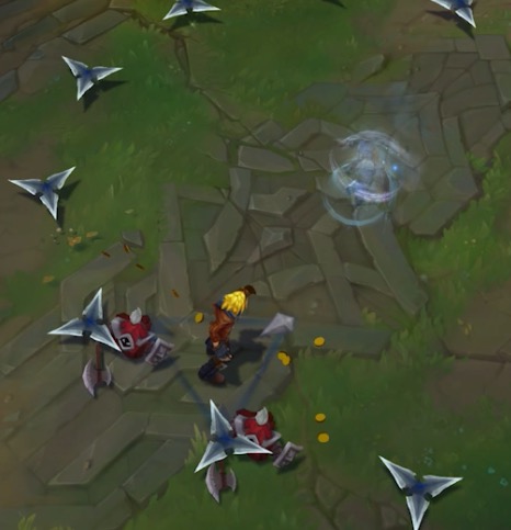 -챔피언이나 몹에 붙어서 쓰면 치명타가 적용된다.